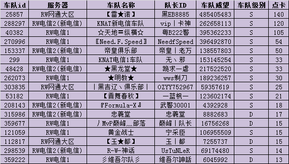 您的车队是否已经在这份激动人心的榜单中登场了呢?下月,这份喜悦是否同样属于您呢?希望大家能够更好的组织好车队的活动,获得我们更多的奖励!