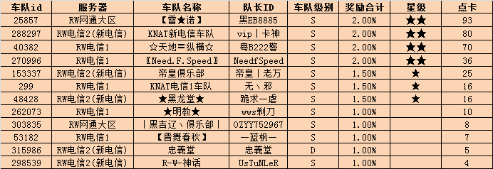 1.点卡奖励还是按照相关规则:由车队队长负责分配;