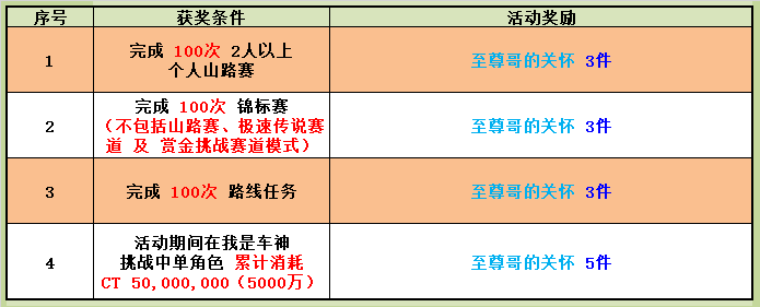 7. 序号4活动,我是车神统计以通行证下完成消耗最多的角色进行单独统计,只统计完成与否,不统计是否刷新记录,同一通行证多个角色完成只发放一份奖励;