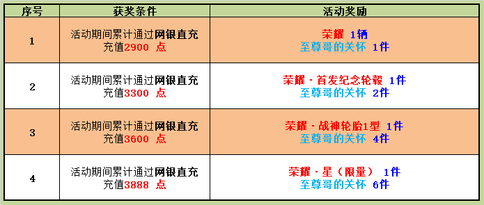 光辉荣耀!06月13日至06月19日活动――充值有礼