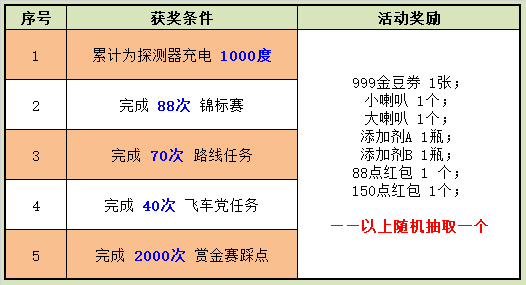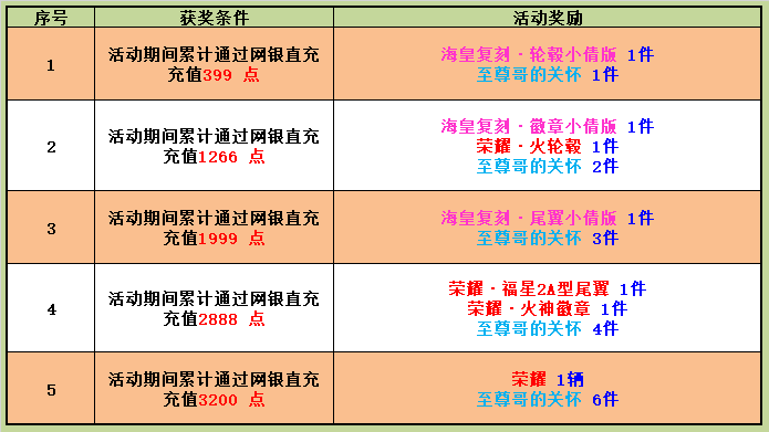 1. 序号1至5活动奖励由系统即时颁发,请在完成相应任务后于游戏中领取;