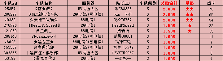 PS:按照比例折算,不足1张的车队不可进行此奖项领取。
