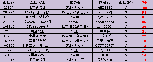 1.点卡奖励还是按照相关规则:由车队队长负责分配;