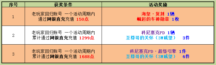 3. 活动统计为累计充值,序号1、2、3限定网银直充途径;
