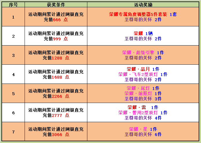 2. 活动1、2、3、4、5、6、7统计为累计充值,限定网银直充途径;