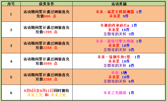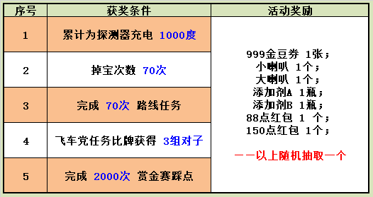 1. 序号1至5活动奖励由系统即时颁发,请在完成相应任务后于游戏中领取;