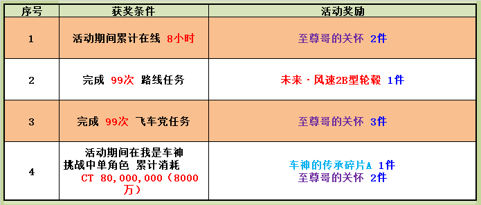 7. 序号4活动,我是车神统计以通行证下完成消耗最多的角色进行单独统计,只统计完成与否,不统计是否刷新记录,同一通行证多个角色完成只发放一份奖励;