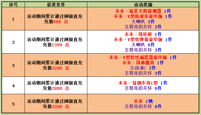 3. 活动统计为累计充值,限定网银直充途径;