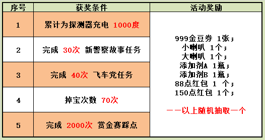 1. 序号1至5活动奖励由系统即时颁发,请在完成相应任务后于游戏中领取;