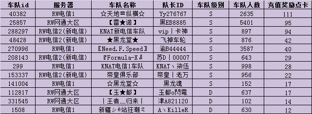 1.点卡奖励还是按照相关规则:由车队队长负责分配;