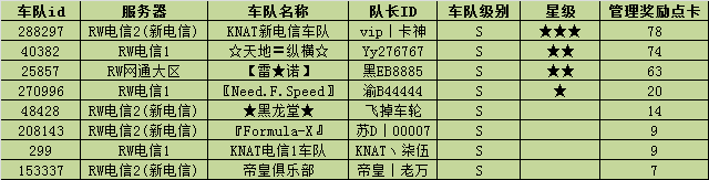 您的车队是否已经在这份激动人心的榜单中登场了呢?下月,这份喜悦是否同样属于您呢?希望大家能够更好的组织好车队的活动,获得我们更多的奖励!