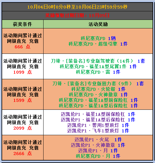 2. 请注意每期活动结束时间及奖励领取过期日期,逾期后奖励将不能被领取;