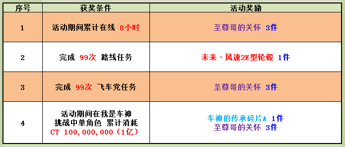 7. 序号4活动,我是车神统计以通行证下完成消耗最多的角色进行单独统计,只统计完成与否,不统计是否刷新记录,同一通行证多个角色完成只发放一份奖励;