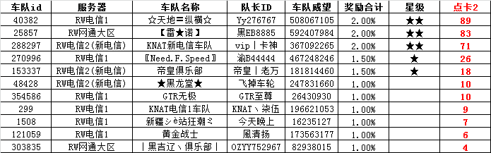 1.点卡奖励还是按照相关规则:由车队队长负责分配;