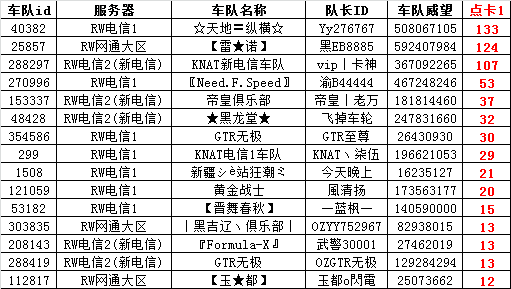 您的车队是否已经在这份激动人心的榜单中登场了呢?下月,这份喜悦是否同样属于您呢?希望大家能够更好的组织好车队的活动,获得我们更多的奖励!