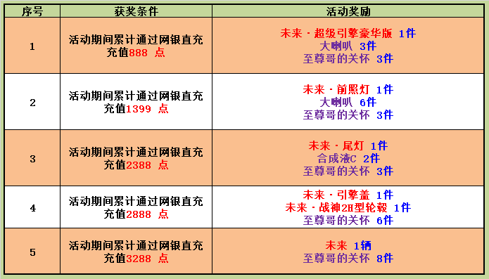 4. 活动统计为累计充值,限定网银直充途径;