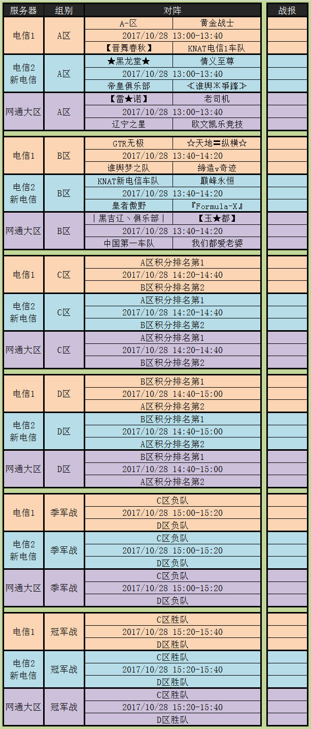 夺城之战10月赛程安排: