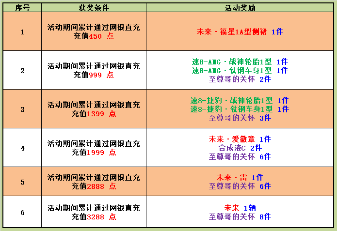 2. 活动1-6统计为累计充值,限定网银直充途径;