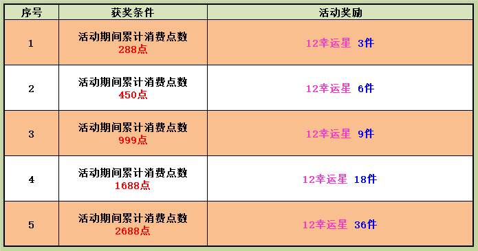 2. 活动统计为累计消费,不包含车队注资及寄售购买点数道具;
