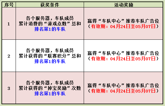 2. 本活动每组服务器共有3个获奖名额,单支车队最多仅可占据1个获奖名额;