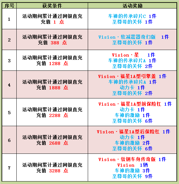 2. 活动1-7统计为累计充值,限定网银直充途径;