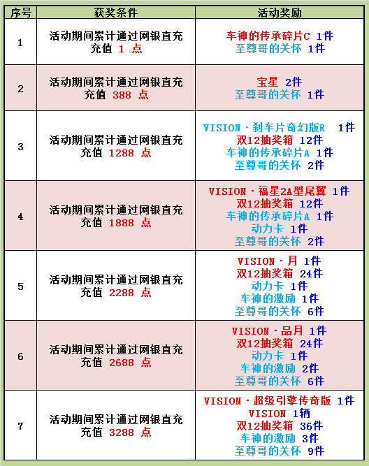 2. 活动1-7统计为累计充值,限定网银直充途径;