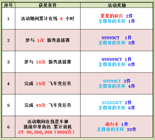 6. 序号4-5活动,需跑完飞车党任务跳出结算页面,未跑完或中途退出不做累计;