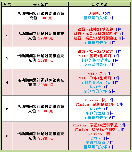 2. 活动1-6统计为累计充值,限定网银直充途径;