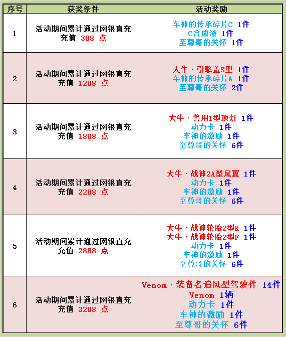 2. 活动1-6统计为累计充值,限定网银直充途径;