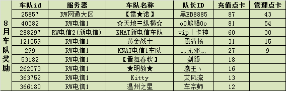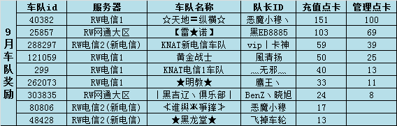 1.点卡奖励还是按照相关规则:由车队队长负责分配;